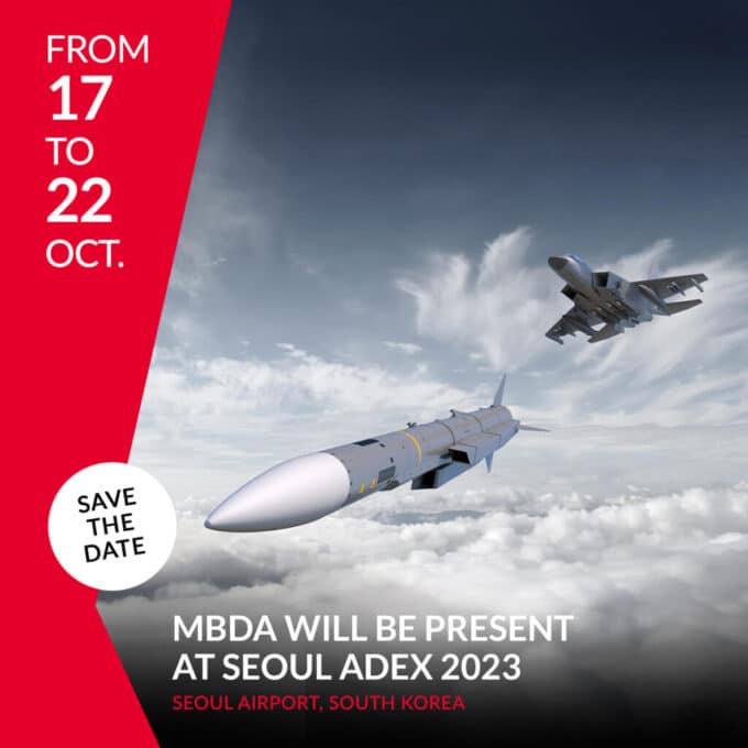 Lors du salon international de l’aérospatial et de la défense de Séoul (ADEX) 2023, MBDA met en avant son missile air-air Meteor intégré aux avions de chasse KF-21 Boramae.