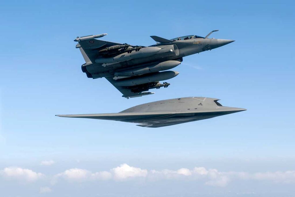 Le programme SCAF (Système de Combat Aérien du Futur) a été lancé industriellement en 2018 par un consortium franco-allemand dirigé par Dassault et Airbus, puis rejoint par l’Espagne en 2019. SCAF devait offrir une famille de systèmes, parfois désignée sous l’appellation NGWS (Next-Generation Weapon System), dont le NGF constituait le « Pilier 1 » au sein de sept piliers de développement : avion de combat piloté, drones collaboratifs de combat (remote carriers), technologie moteur, simulation, capteurs, furtivité et un « combat cloud » connectant un système étendu de systèmes.