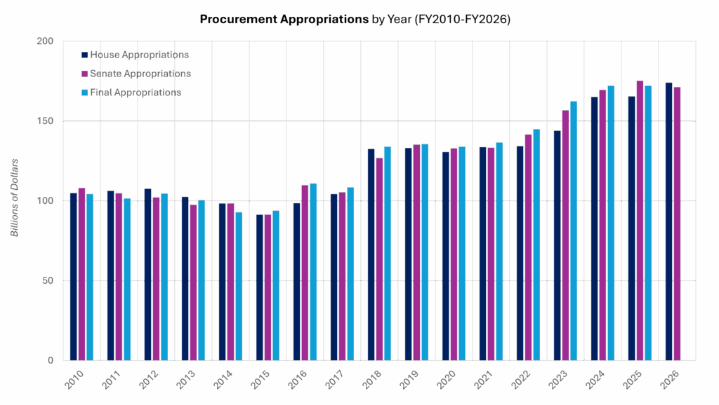 Le vote des crédits de défense est traditionnellement difficile à finaliser dans les délais. Au sein de la Chambre, une majorité simple suffit pour adopter un texte, ce qui favorise une posture partisane plus marquée. Au Sénat, un consensus plus large est requis (60 voix), induisant des projets de loi plus consensuels. Cette année, les retards ont creusé l’écart entre les projets des deux chambres, générant l’une des plus grandes divergences jamais observées sur la ligne budgétaire principale.