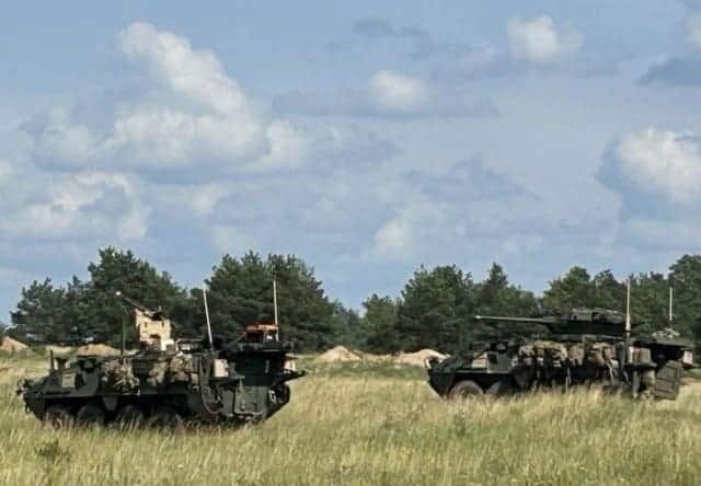 SUR LE CAMP D’ENTRAÎNEMENT DE BEMOWO PISKIE, Pologne — Lors d’un exercice en conditions réelles dans le cadre du Project Flytrap 4.0 le 1er août, des soldats du 2e régiment de cavalerie de l’US Army ont détecté, suivi, engagé et neutralisé plusieurs drones à des distances comprises entre 500 et 800 mètres en utilisant le système BLADE (Ballistic Low Altitude Drone Engagement) installé sur un véhicule Stryker, dans le nord-est de la Pologne.