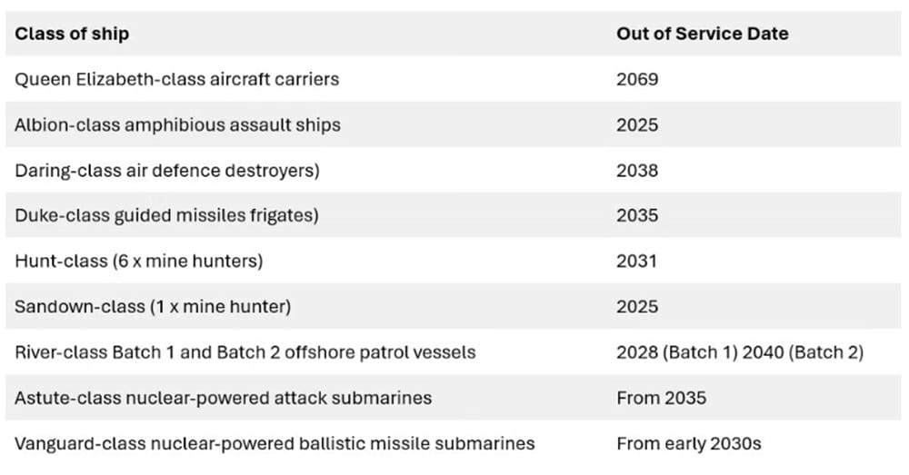 Les nouvelles plateformes, notamment les frégates de type 31 et type 26, sont prometteuses, mais leur arrivée ne sera pas assez rapide pour empêcher une diminution supplémentaire de la flotte de surface.