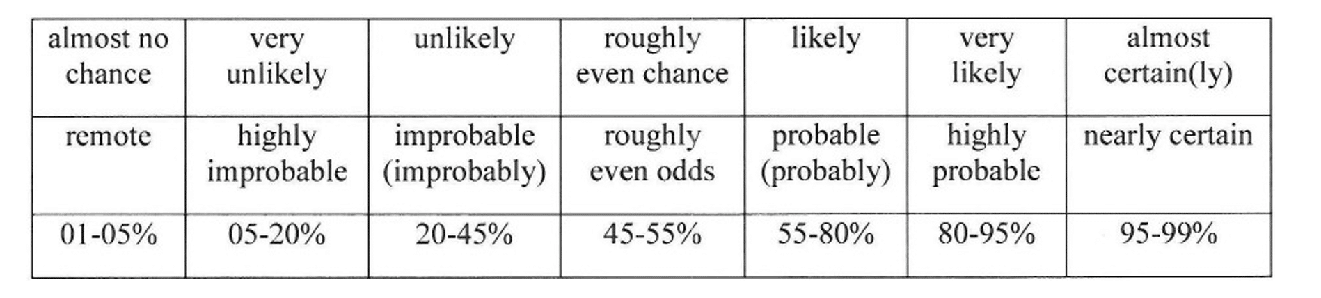 En 2020, lorsque le lieutenant-général Bob Ashley dirigeait la Defense Intelligence Agency, un débat marqué animait la communauté du renseignement entre l’estimation basée à Washington et celle des analystes en Afghanistan sur la rapidité avec laquelle l’État islamique en Afghanistan pourrait menacer le territoire américain après le retrait des forces américaines. Les analystes états-uniens anticipaient un délai plus long que ceux sur place, jugés plus lucides sur le terrain. Cette évaluation pouvait influencer la réduction des effectifs américains et la décision même du retrait. Pour rapprocher ces vues, Ashley avait organisé une vidéoconférence classifiée avec les principaux analystes impliqués, chacun exposant ses arguments avec preuves. Il constata que tous lisaient les mêmes documents mais qu’ils les interprétaient différemment. Ils ne purent jamais s’accorder. Il tranchait alors lui-même mais présentait au président des chefs d’état-major une vue incluant l’opinion dissidente et ses motifs.