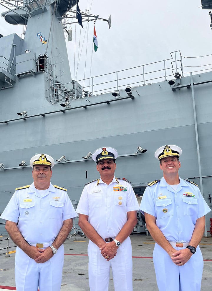 Lors de son séjour, l’amiral Tripathi a visité plusieurs installations de la Marine brésilienne, dont le complexe naval d’Itaguaí et le porte-hélicoptères amphibie NAM Atlantico (A140). Il a également assisté à la parade de fin de formation de 140 aspirants officiers à l’Académie navale de Rio de Janeiro.
