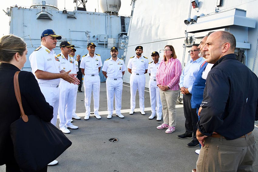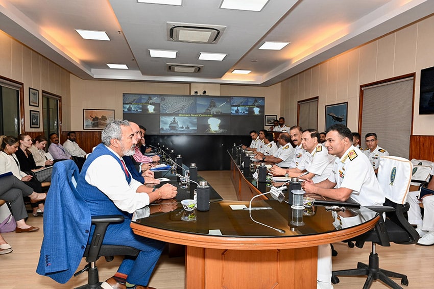 La délégation a été informée des capacités opérationnelles ainsi que des rôles et responsabilités du Commandement naval Ouest. Les échanges avec le vice-amiral Krishna Swaminathan, commandant en chef du Commandement naval Ouest, ainsi qu’avec d’autres officiers supérieurs, ont porté sur la sécurité maritime, la formation croisée et les exercices bilatéraux.