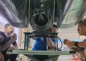 Un avion, étrangement similaire au Su-34, a récemment effectué un vol d’essai sur un site situé dans le nord-ouest de la Chine. Ce qui intrigue particulièrement, ce n’est pas seulement son apparence, mais aussi le moteur rudimentaire fixé sous son fuselage, un moteur à détonation conçu pour propulser cet « Su-34 » grâce à une série d’explosions contrôlées.