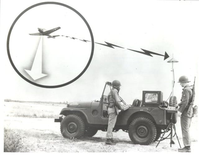 Un article publié dans l’édition de mars-avril 1956 de Tec-Tac, support de formation technique et tactique à distance produit par la Signal School de Fort Monmouth, dans le New Jersey, souligne les premiers développements de la technologie drone pour la surveillance, à destination des soldats du Signal Corps.