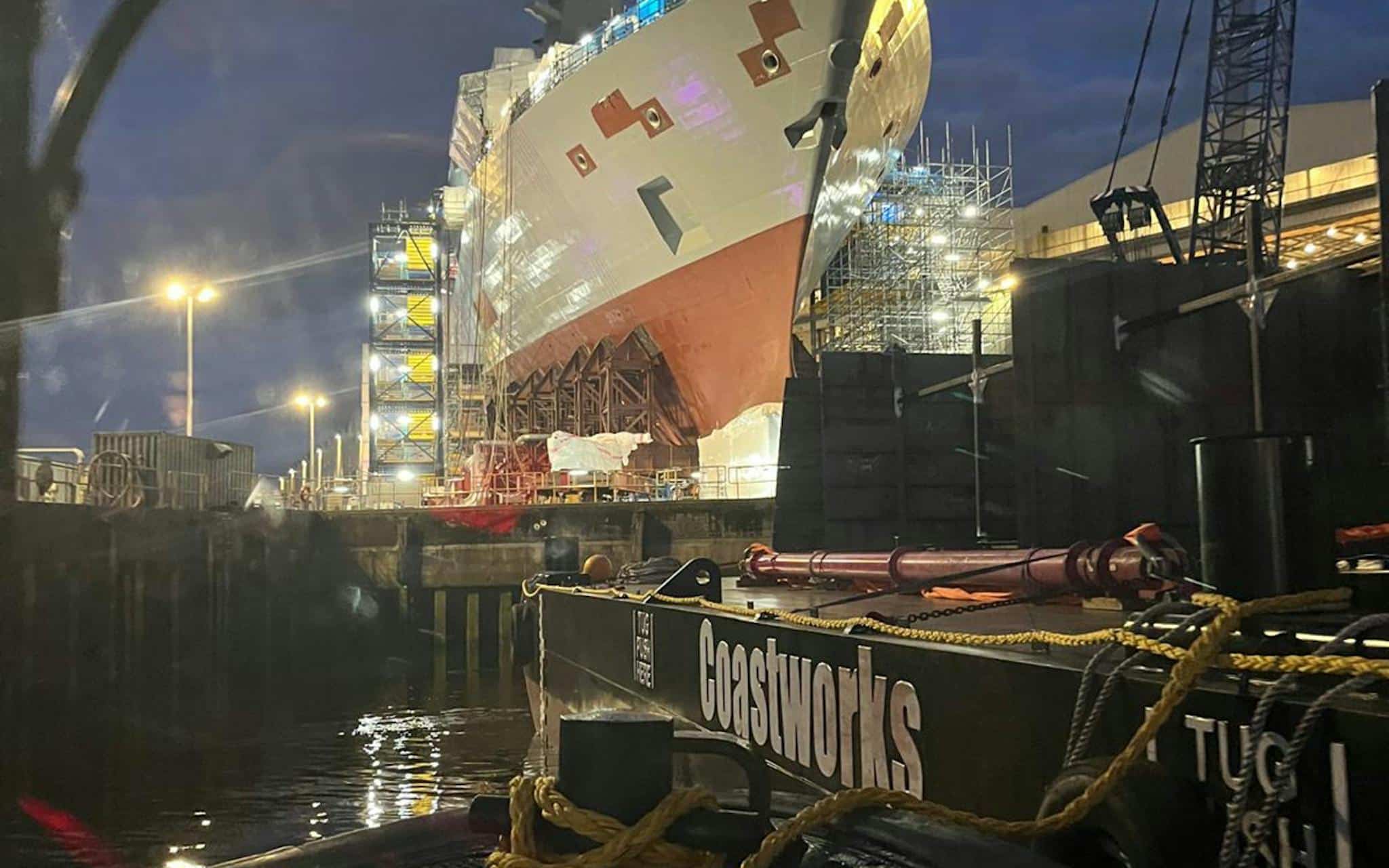 Cette mission a été réalisée par Coastworks, qui a utilisé sa nouvelle barge CW-9, visible sur une photo devant le HMS Cardiff lors de sa première opérationnelle. La CW-9, une barge à fond plat de 50 mètres par 18,8 mètres, offre une capacité de charge importante de 1 880 tonnes, un atout essentiel pour la logistique maritime lourde et de grande envergure.