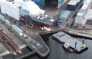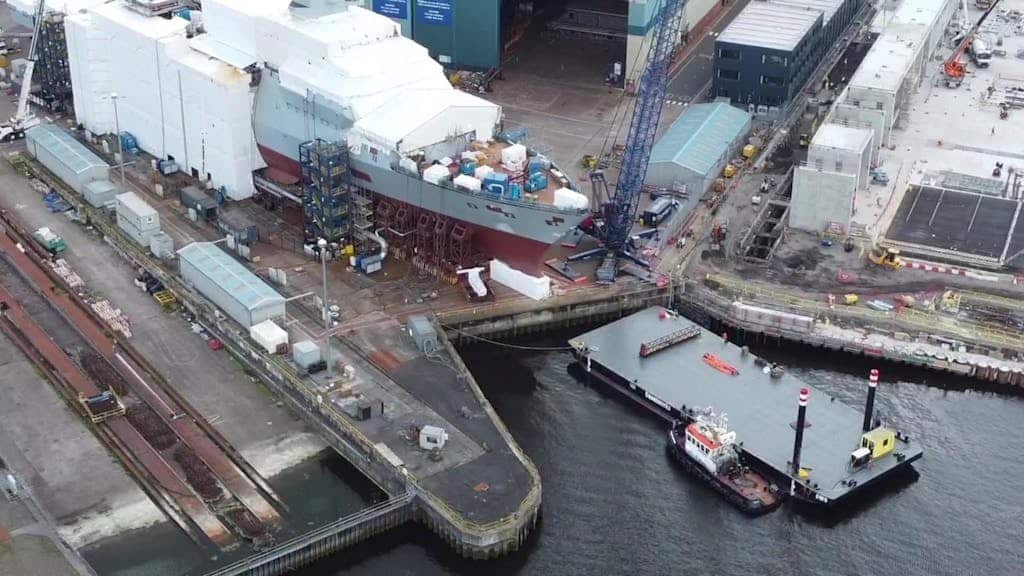 Ferguson Marine a récemment achevé la fabrication de sections de coque pour le programme britannique des frégates de type 26. Ces éléments cruciaux ont été transportés avec expertise du chantier naval Ferguson Marine, situé à Port Glasgow, vers les installations de BAE Systems à Govan.