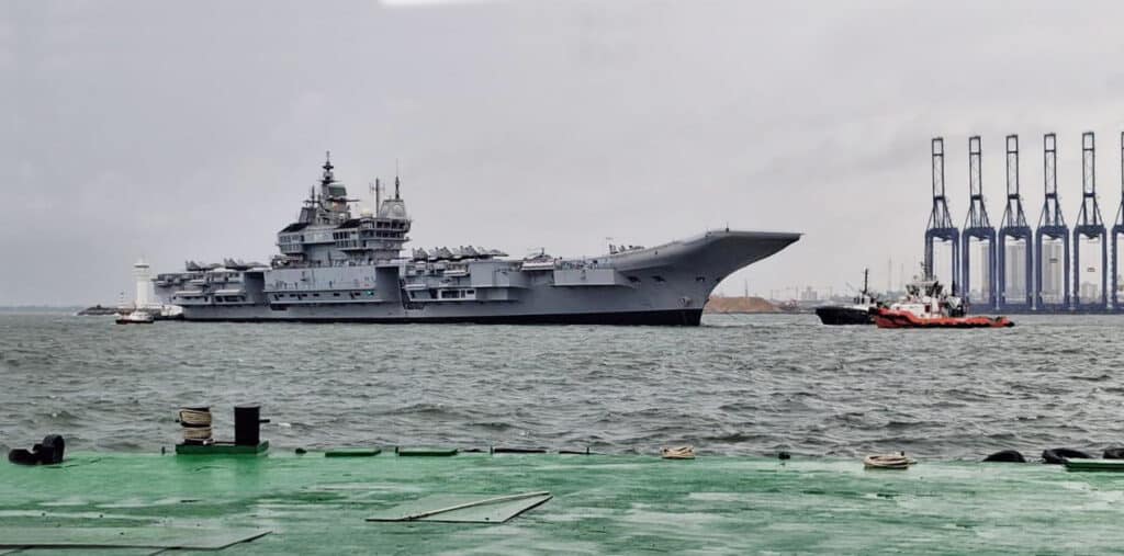 New Delhi, 28 novembre. Le premier porte-avions indien construit localement, l’INS Vikrant, accompagné de la frégate également indigène INS Udaygiri, représente la marine de guerre indienne lors de la Revue Internationale de la Flotte (International Fleet Review – IFR) 2025 organisée par la marine sri-lankaise à Colombo, du 27 au 29 novembre 2025. Cet événement s’inscrit dans le cadre des célébrations du 75e anniversaire de la marine sri-lankaise et réunit des navires, délégations et observateurs de plusieurs pays.