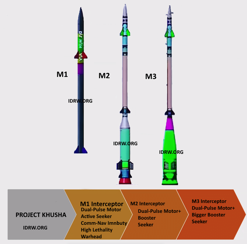 Développé avec un budget de 40 000 crore INR en collaboration avec Bharat Electronics Limited (BEL) et des partenaires privés tels que Solar Industries, le projet Kusha comprend trois versions d’intercepteurs : M1 (150 km), M2 (250 km) et M3 (350 km). Des avancées récentes concernant le moteur M2, une unité compacte à forte poussée équipée de canisters amortissants et de glissières d’éjection intelligentes, laissent présager un début de production dès 2028, avec des essais utilisateurs prévus à Pokhran en 2027. Le design modulaire, basé sur des moteurs d’un diamètre de 250 mm, assure une évolutivité : des versions futures pourraient atteindre 500 km, ciblant des menaces de type ICBM.