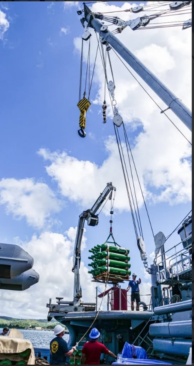 Pour cette mission, la Marine a mobilisé l’USNS Salvor, un navire spécialement conçu pour des opérations de sauvetage en mer, de plongée, de remorquage, de lutte contre les incendies en haute mer, de levage de charges lourdes et d’appui à la sécurité régionale. Selon un document officiel, ce navire est équipé de deux grues puissantes : une grue avant d’une capacité de 7,5 tonnes et une grue arrière pouvant soulever jusqu’à 40 tonnes. Il est également capable de réaliser des levages dynamiques allant jusqu’à 150 tonnes à l’avant ou à l’arrière, et jusqu’à 300 tonnes en combinant les deux zones de levage.