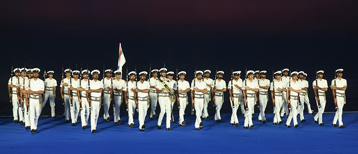 Sur le plan culturel et cérémoniel, la démonstration était accompagnée d’une danse traditionnelle Hornpipe exécutée par les membres du Corps des cadets de la mer, d’un programme artistique, ainsi que d’un exercice dynamique de Continuity Drill réalisé par le personnel naval. La journée s’est achevée avec une retraite aux flambeaux assurée par la fanfare navale, suivie de la cérémonie traditionnelle du coucher du soleil, où les navires illuminés dessinaient une silhouette impressionnante le long de la côte.