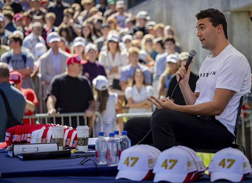 Quelques instants avant la fusillade, Kirk répondait à une question sur les violences par armes à feu aux États-Unis. La question concernait le nombre de tireurs en masse parmi les Américains transgenres sur les dix dernières années et Kirk répondait par « trop ». Immédiatement après, un coup de feu a retenti, mettant fin à son intervention.