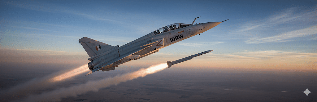 Développé par le groupe européen MBDA, le Meteor est reconnu comme l’un des missiles air-air à très longue portée (BVRAAM) les plus avancés au monde. Doté d’une propulsion par statoréacteur (ramjet), d’un guidage radar actif et d’une zone sans échappatoire (“no-escape zone”) étendue, il offre une létalité exceptionnelle en combat aérien à distance. Son intégration sur le Tejas Mark 1A illustre la volonté de l’IAF d’équiper ses plateformes indigènes avec un armement de premier plan, en cohérence avec l’initiative Atmanirbhar Bharat (Inde auto-suffisante).