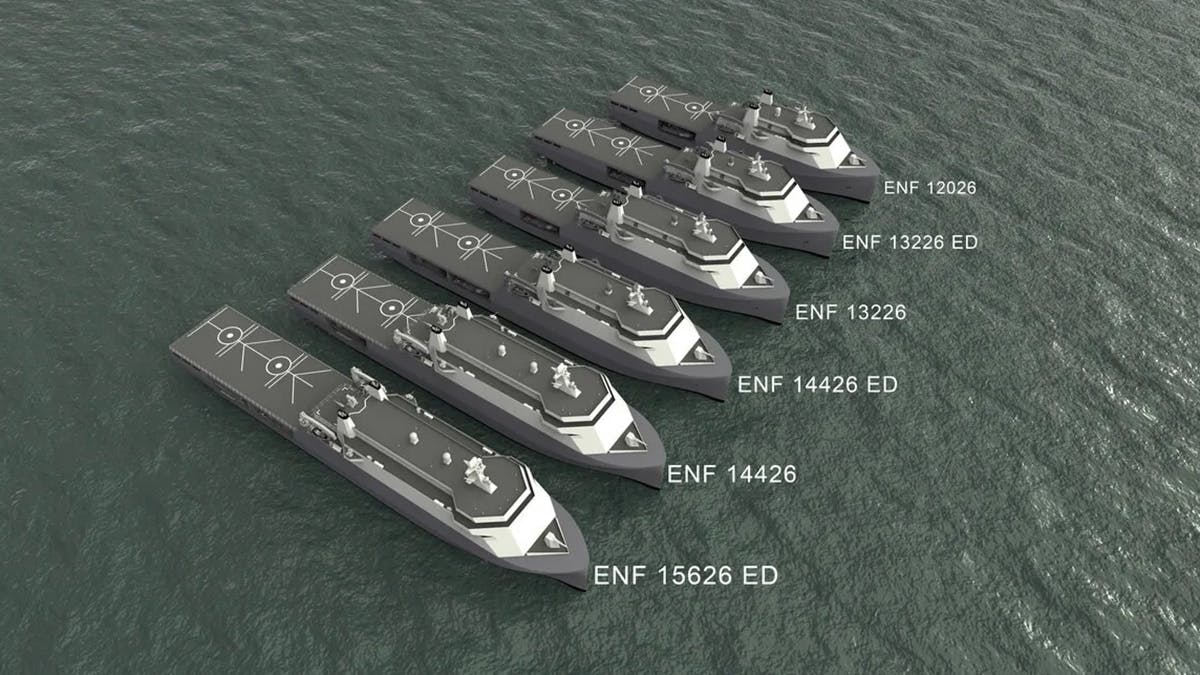 La coque Enforcer peut être aménagée avec différentes superstructures et configurations internes. Ses ponts véhicules et de fret peuvent être reconfigurés ou containerisés pour créer les baies modulaires recherchées par la Royal Navy. Les installations aviation sont déjà vastes, avec des grands ponts d’envol et des hangars capables d’accueillir plusieurs hélicoptères, dont les variantes les plus grandes conçues pour les Chinook – un point clé à l’heure où la capacité de levage lourd et l’intégration des drones sont prioritaires.