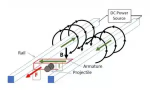 Contrairement aux canons classiques qui utilisent la poudre pour propulser leurs munitions et génèrent flammes et fumée, les canons électromagnétiques produisent parfois eux aussi des étincelles et des fumées issues d’arcs électriques. En effet, dans un railgun, le projectile crée un court-circuit électrique entre deux rails, générant une intense décharge électrique qui peut produire une flamme et des étincelles, témoignant de la forte chaleur générée.