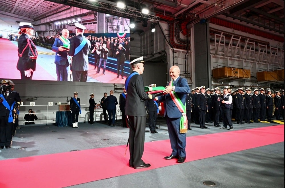 La remise de la Bandera de Guerra est un moment symbolique majeur dans la vie de toute unité de la Marine italienne. Ce pavillon, offert au nom de la Nation, incarne l’honneur, les traditions et les valeurs des Forces armées italiennes, conférant au navire son statut de bâtiment de guerre pleinement opérationnel sous la loi de l’État.