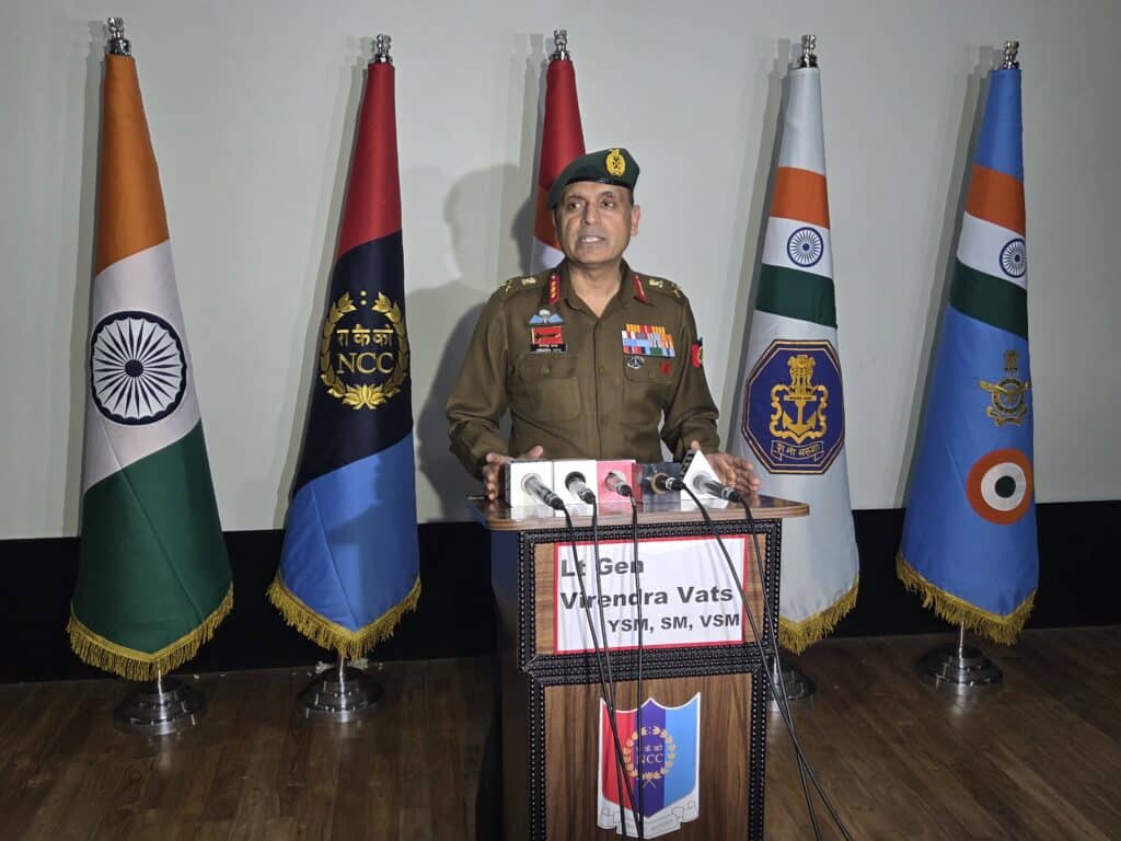Le Directeur général a reconnu la coopération étroite et la relation professionnelle solide entre la direction du NCC, le quartier général MG & G Area, ainsi que toutes les entités gouvernementales de l’État. Il s’est entretenu avec le Lieutenant-général D.S. Kushwah, AVSM, SM, commandant du HQ MG & G Area, au cours de laquelle plusieurs aspects liés à l’expansion du NCC, à la formation, à la participation des cadets à l’opération Sindoor, ainsi qu’aux diverses activités de service social et de développement communautaire ont été évoqués.