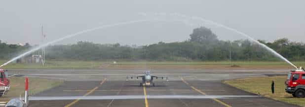 Le pilote d’essai principal de HAL, le Group Captain KK Venugopal (retraité), a effectué le vol du Tejas Mk1A, suivi de démonstrations aériennes spectaculaires des Su-30MKI et HTT-40. Le Mk1A a également été salué par un tir à la lance à eau.