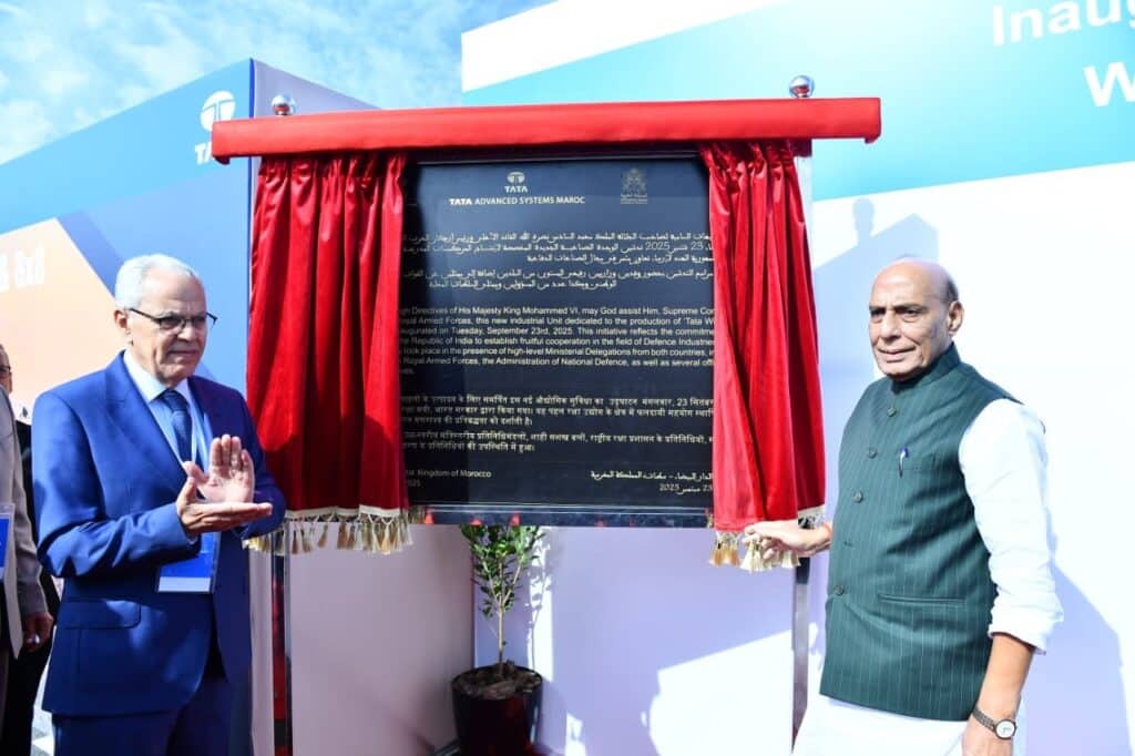 Le ministre indien de la Défense, Rajnath Singh, et son homologue marocain, M. Abdelatif Loudyi, ont inauguré conjointement le 23 septembre 2025 l’usine de production de pointe de Tata Advanced Systems Limited (TASL) à Berrechid, au Maroc. Cette installation, étendue sur 20 000 mètres carrés, est destinée à la fabrication de la plateforme blindée à roues 8×8 (WhAP), un véhicule développé conjointement par TASL et l’Organisme indien de recherche et de développement en défense (DRDO). Cet événement marque un jalon important dans le partenariat stratégique en pleine évolution entre l’Inde et le Maroc.
