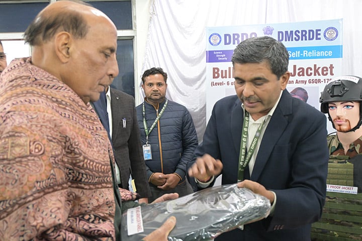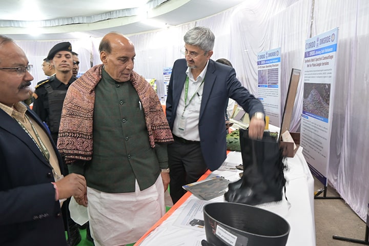 M. Rajnath Singh a salué les efforts du laboratoire pour la mise au point réussie de produits de défense tels que le gilet pare-balles de niveau 6, le carburant Naphtyl pour le missile BrahMos, la membrane polymérique haute pression destinée aux navires de la Garde côtière indienne, la fibre en carbure de silicium, le costume chimique, biologique, radiologique et nucléaire (CBRN) à base de tissu en carbone activé, ainsi que divers autres produits furtifs. Il a insisté sur la nécessité que les développements technologiques répondent précisément aux besoins des utilisateurs finaux.