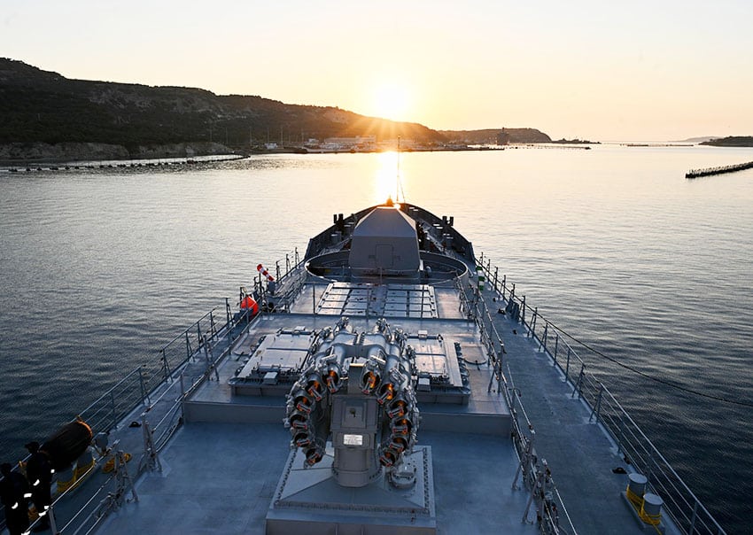 New Delhi, 21 août. Le navire indien INS Tamal, dernière frégate furtive en date, a fait escale à Souda Bay, en Grèce, le 19 août 2025, lors de son retour en Inde après sa mise en service en Russie.