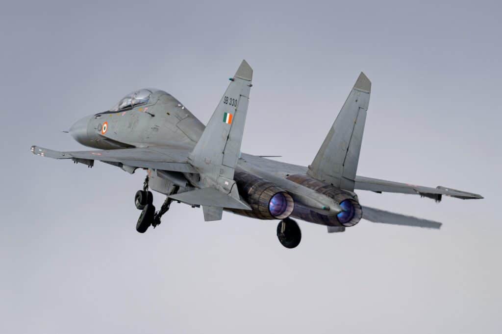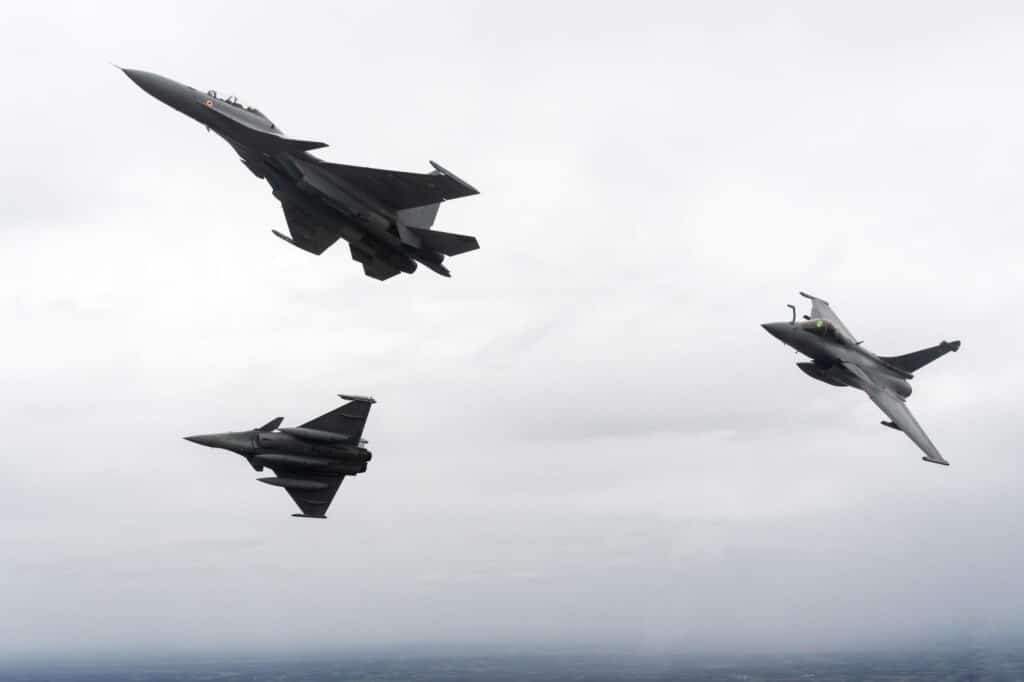 Selon un communiqué du ministère de la Défense publié le 4 décembre, l’Indian Air Force a déployé des chasseurs Su-30MKI, appuyés par des ravitailleurs en vol IL-78 et un avion de transport C-17 Globemaster III, pour ces manoeuvres conjointes. Durant l’exercice, les deux forces aériennes ont réalisé une série de missions avancées, incluant frappes coordonnées, missions d’escorte et opérations de soutien, le tout dans un cadre simulant des conditions réelles de combat.
