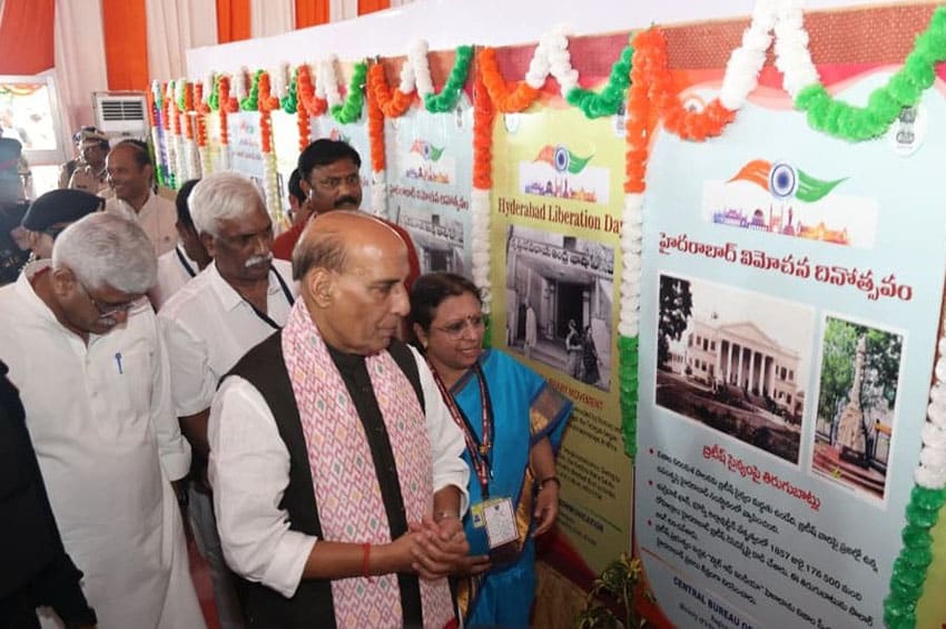 Dans le cadre des commémorations, Rajnath Singh a visité une exposition photographique sur la Journée de la Libération de Hyderabad, organisée par le Bureau central de communication. Le ministre de la Culture et du Tourisme, Gajendra Singh Shekhawat, le ministre du Charbon et des Mines, G Kishan Reddy, ainsi que le ministre d’État des Affaires intérieures, Bandi Sanjay Kumar, figuraient parmi les personnalités présentes.