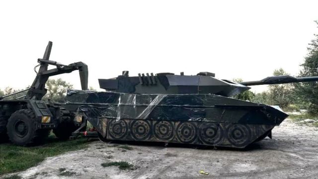 Des images ont récemment circulé montrant un leurre gonflable reproduisant un char Leopard 2A6 d’origine allemande. Le lieu et la date précise de ces photographies restent inconnus, mais le paysage suggère une période autour de la fin de l’été ou au début de l’automne. L’identité du fabricant de ce modèle gonflable demeure inconnue.