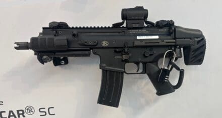 Le FN SCAR SC Carbine est également présenté, chambré en 5,56 x 45 mm OTAN (.223). Cette carabine compacte s’adresse aux opérations nécessitant mobilité et rapidité tout en conservant une puissance de feu conséquente.
