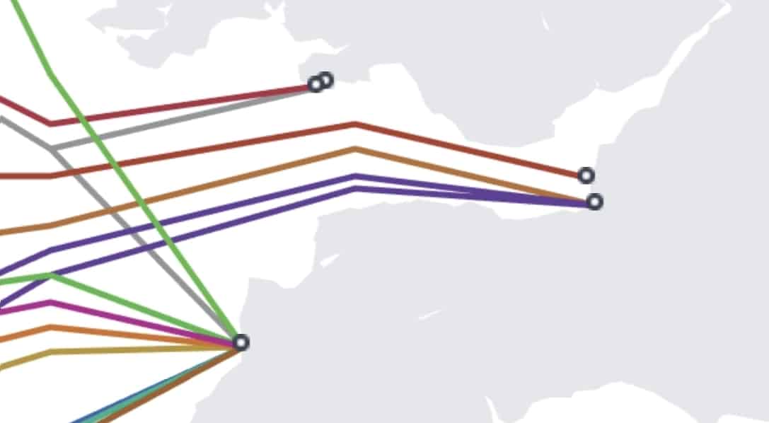 Il est également important de noter que le navire a franchi des zones où passent des câbles sous-marins de télécommunications, comme le montre la carte ci-dessous.