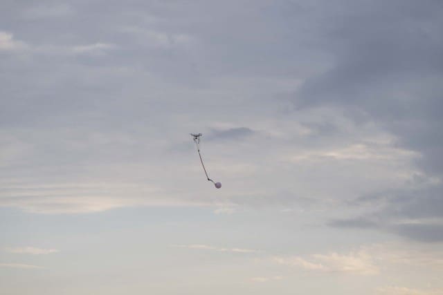 Pour des raisons de coût, les stagiaires ne tirent pas directement sur des drones opérationnels. Ils s’exercent plutôt sur des ballons fixés à ces drones, qui constituent une cible plus petite et plus difficile à toucher.