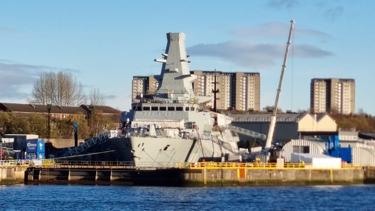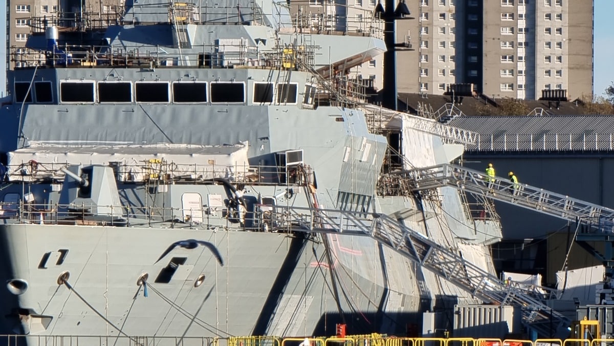 De nouvelles images prises récemment au chantier naval Scotstoun de BAE Systems montrent que le HMS Glasgow, première frégate de type 26, entre dans les phases finales de sa construction. Le canon principal de 127 mm, les deux mâts de communication ainsi qu’une série d’équipements de pont plus petits sont désormais clairement visibles.