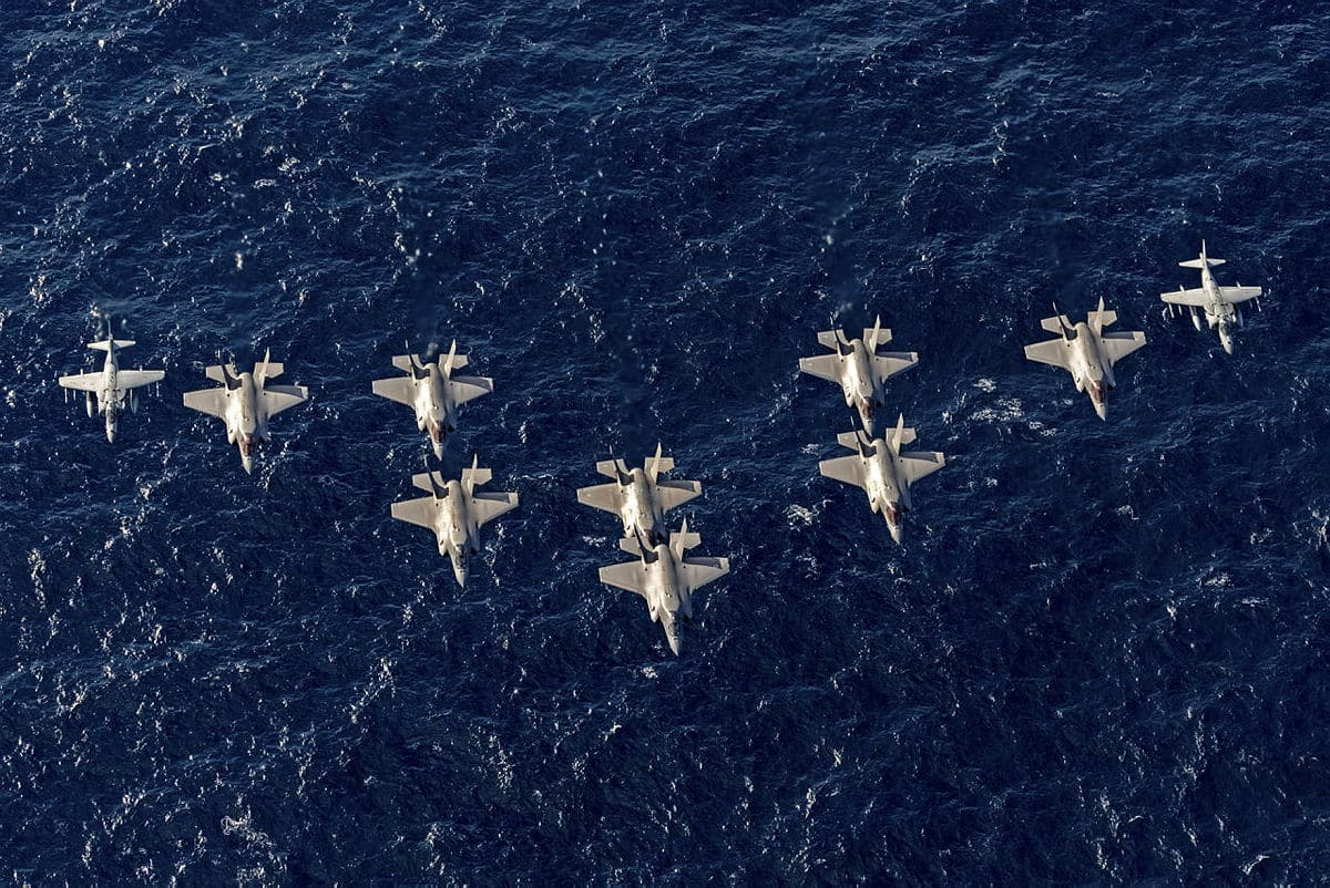 Les forces aériennes et navales britanniques et italiennes se sont unies dans le ciel méditerranéen samedi dernier, avec des avions F-35B des deux pays, accompagnés des Harriers AV-8B de la Marine italienne, volant en formation au-dessus du HMS Prince of Wales et du porte-avions italien Cavour.