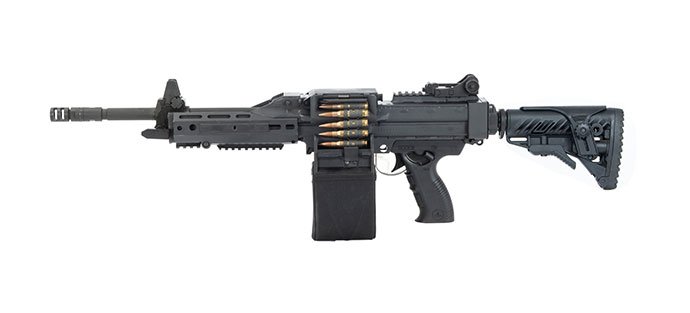 - Compatibilité avec les bandes désintégrables standard OTAN ainsi qu’avec des chargeurs polymères indigènes développés par l’Ordnance Factory Board