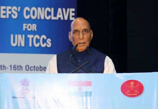 Lors de la session inaugurale du Sommet des chefs militaires des pays contributeurs de troupes aux opérations de maintien de la paix de l’ONU (UNTCC), organisée pour la première fois en Inde au Manekshaw Centre de New Delhi du 14 au 16 octobre, Rajnath Singh s’est adressé aux hauts responsables militaires de 32 pays participants.