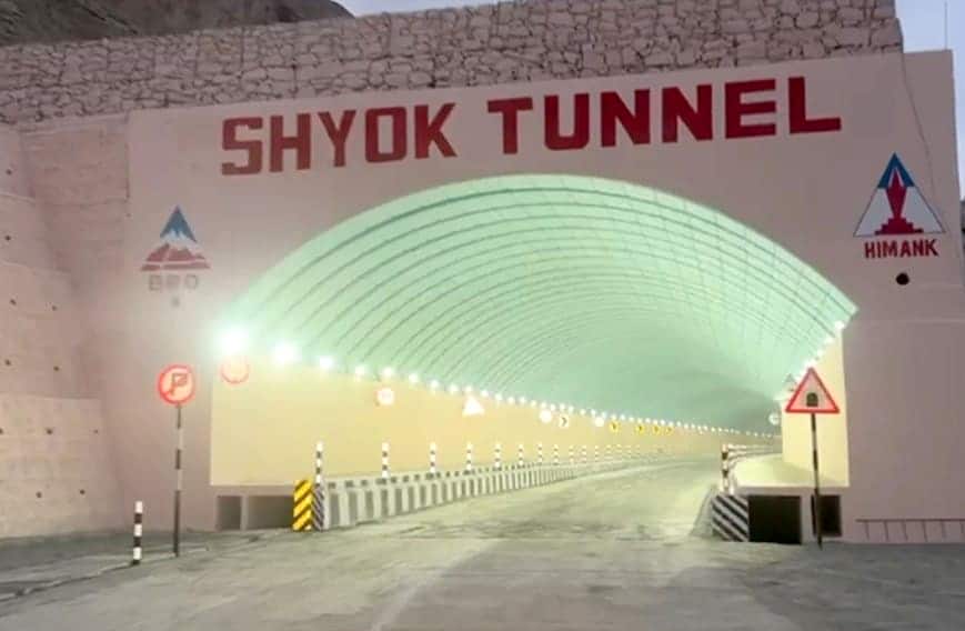 Parmi les projets emblématiques inaugurés figure le tunnel Shyok, une structure de 920 mètres construite en technique « cut-and-cover » dans un terrain extrêmement difficile. Le ministre a insisté sur le fait que ce tunnel, accessible en toutes saisons, faciliterait la mobilité, la sécurité et le déploiement rapide des troupes dans une zone régulièrement exposée à de fortes chutes de neige, des avalanches et des températures négatives.