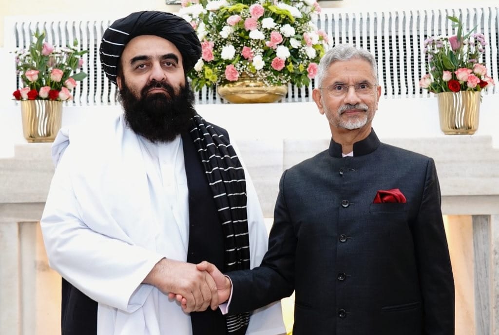 Illustration : Le ministre afghan des Affaires étrangères Amir Khan Muttaqi rencontre le ministre indien des Affaires étrangères Subrahmanyam Jaishankar à New Delhi.
